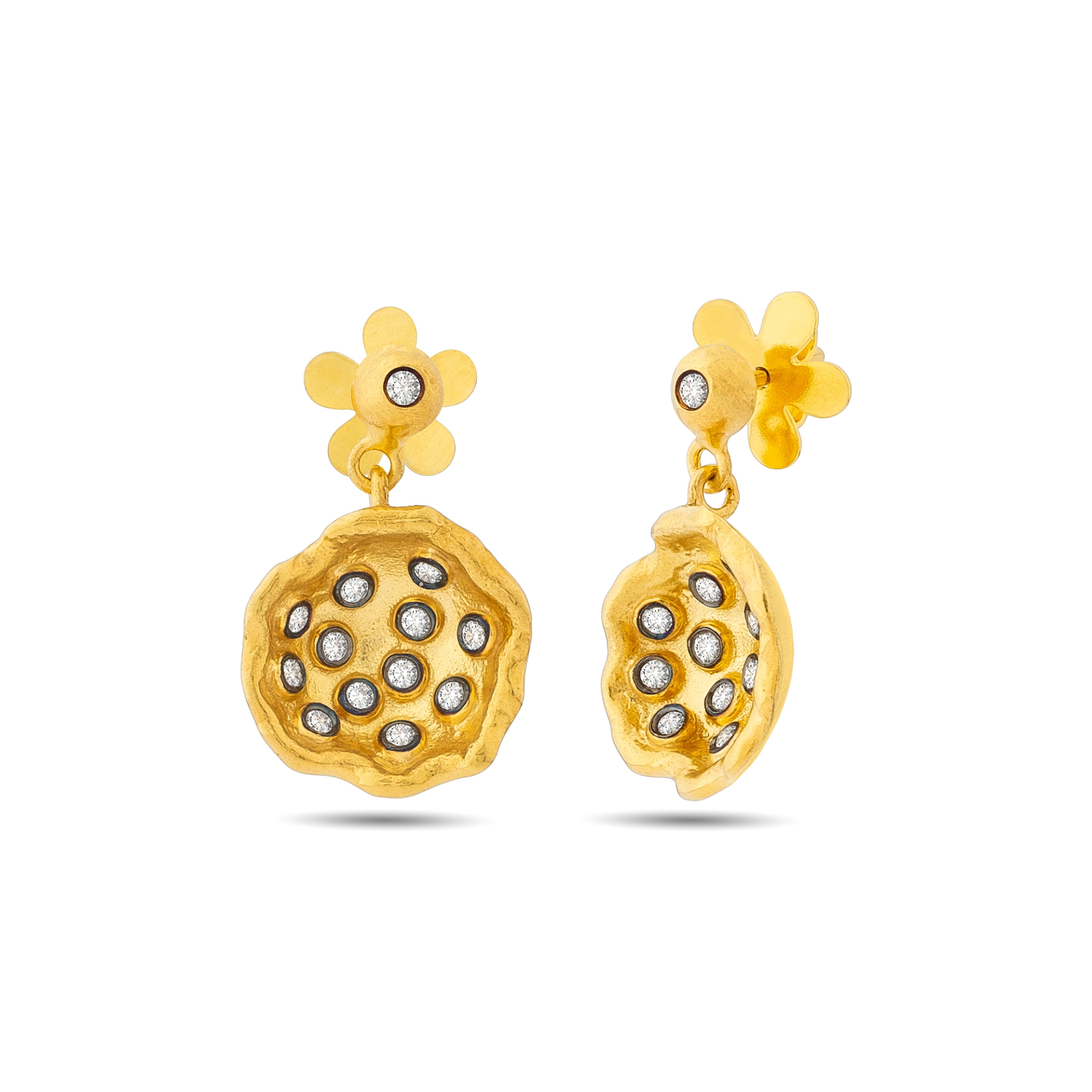 Çanak formundaki bu zarif küpe, ışığı yalnızca yansıtmaz;